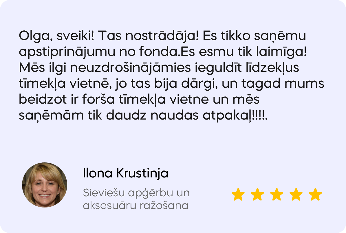 Tas nav aizdevums! Jums nekas nav jāatmaksā! Finansējums ir kompensācija par jau iztērēto naudu. Jūs saņemsiet atpakaļ daļu no jūsu projektā jau ieguldītās naudas. ✅
